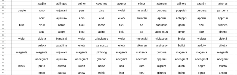 here are my charts translating colour number and my chosen ten words