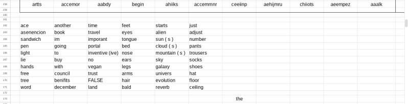 asking questions and viewing areas of the charts stops you at a single word or alphabeticalisation where you then tell yourself the answer to your question